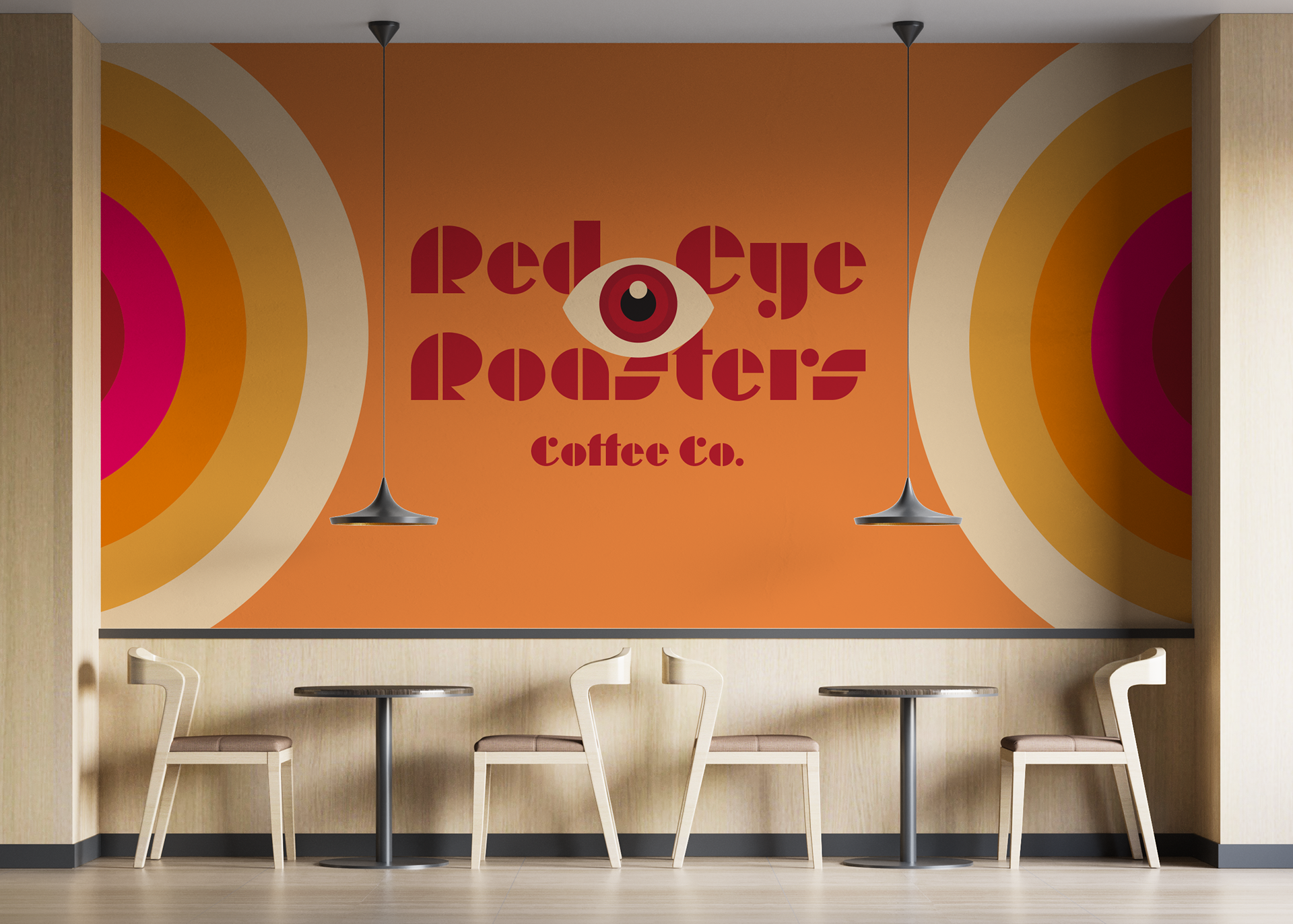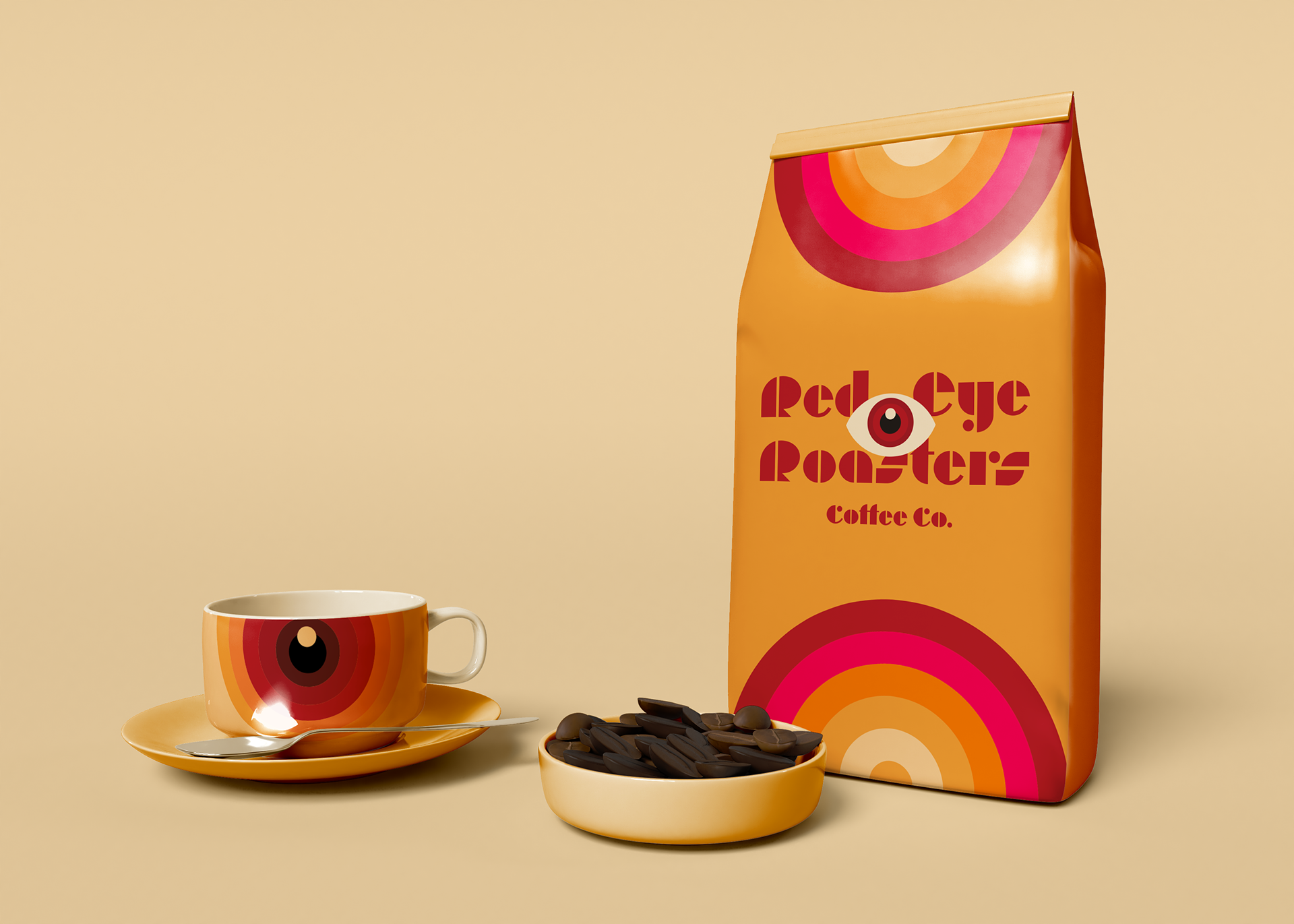Brand identity for Red Eye Roasters Coffee Co. Style inspired by 70s retro